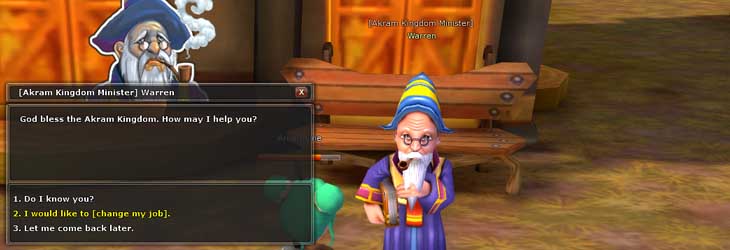 Once you reach Level 10, you should make your way to the Canyon City of Zant where you should speak to the Akram Kingdom Minister, Warren, to begin your first class change quest.